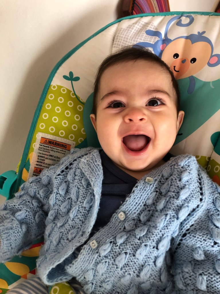 Han habido días y días, semanas y semanas algunas más risueño, otras más molesto, inquieto e irritable, con más gases, más reflujo y seguramente más dolor. Pero diría de todas maneras que eres muy risueño, conversador y ruidoso, un loquillo con mucha fuerza además