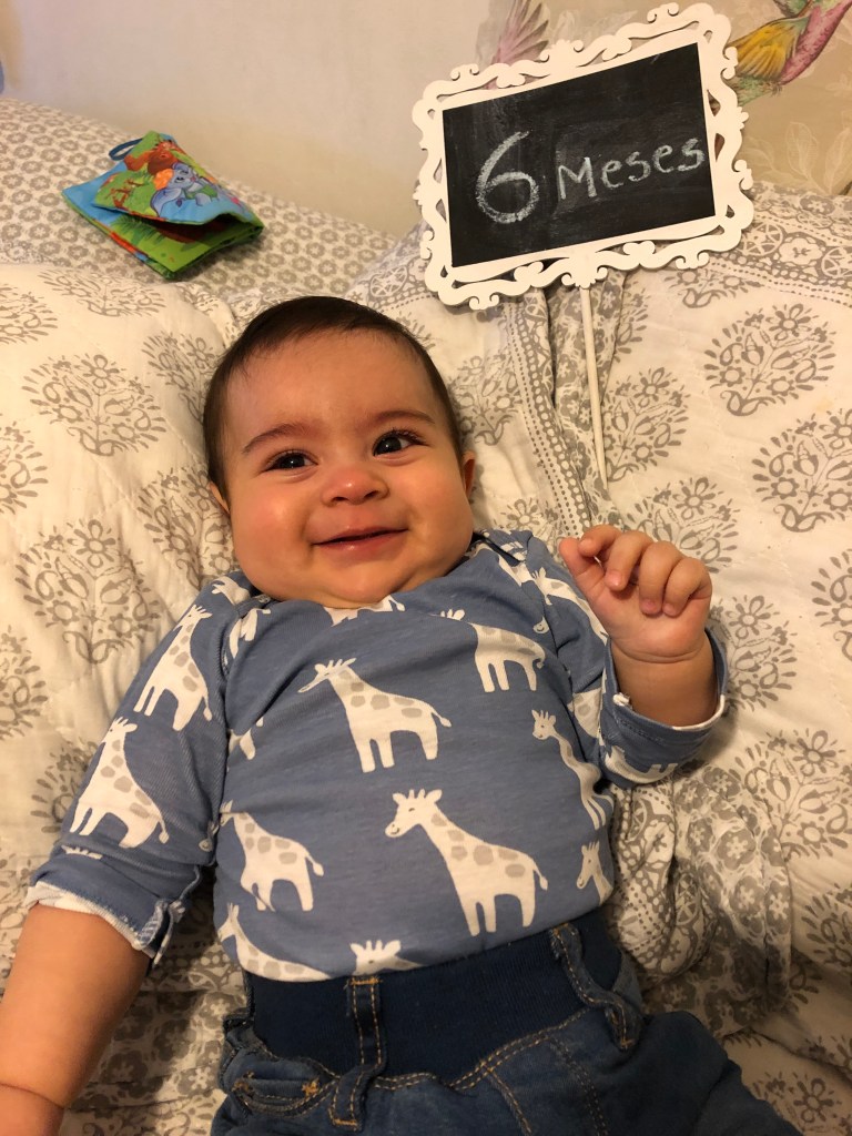 Eres una pequeña hermosura de 6 meses, un Gordo redondo exquisito. Cachetoncito bello, con una cabecita redonda y perfecta. Se te ha caído mucho el pelo hijito, pero quedaste con un look muy peinado hacia el lado innatamente cómo tu hermanita de bebé y sigues bello bello, cada día más!
