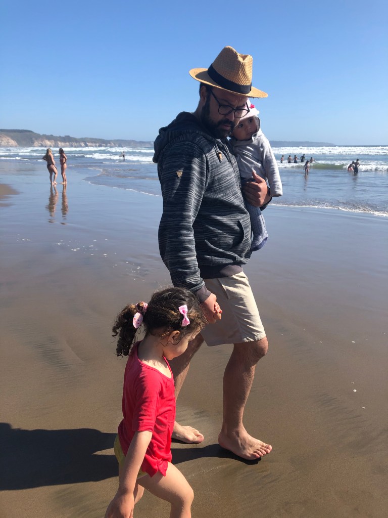 Lo hemos pasado súper bien de ver tan contenta y entretenida a la Estela… y tú nuestro pequeño tesoro, has estado muy regaloneado y paseado. Conociste la playa, el mar y tocaste la arena por primera vez. Extrañado la tocabas con tus manitos gordas y habrías y cerrabas los dedos. Te bañamos sentado en la tina grande y te encantó. Sonreías y mirabas el agua chapoteando con las manos y los pies.