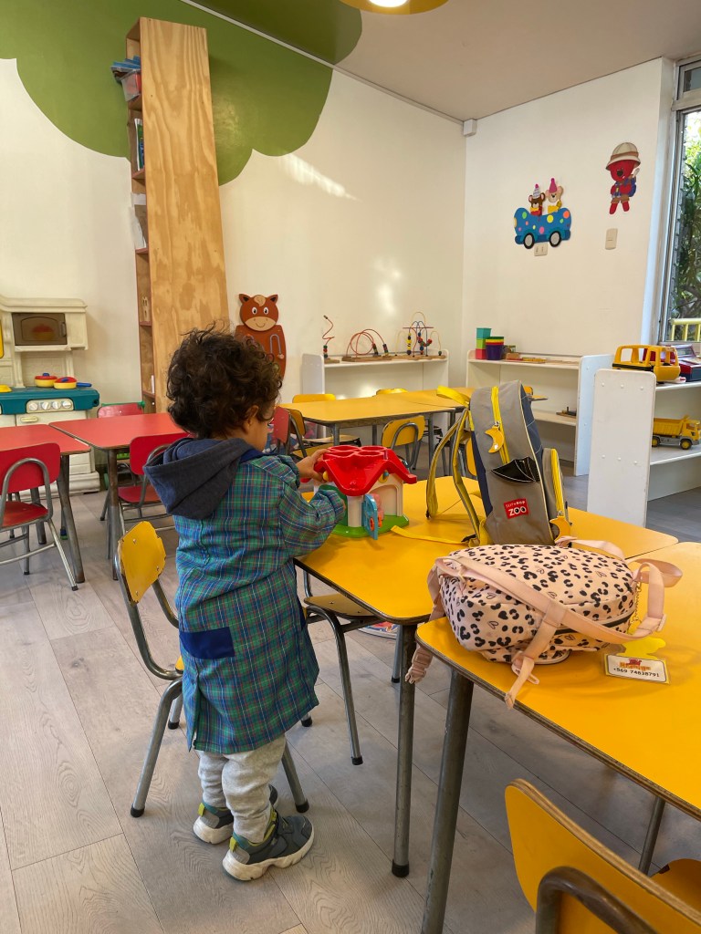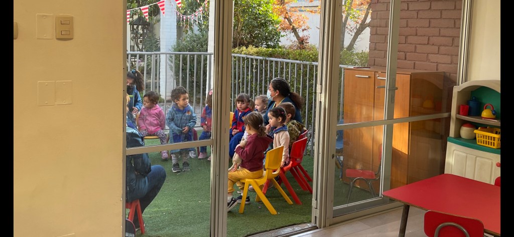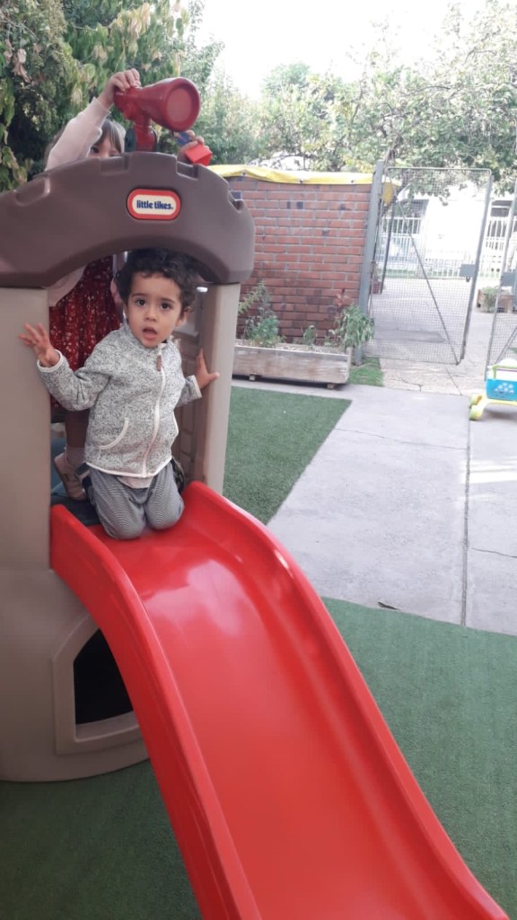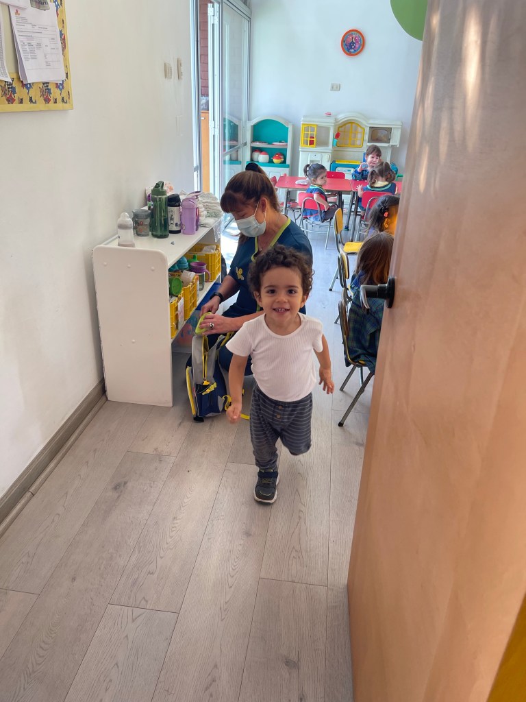 Ya la siguiente semana entraba a estacionar el coche, al ppio te dejé dentro de la sala, pero a los pocos minutos ya me iba por ir te ponías a explorar solito la sala o te ibas a sentar al círculo de saludo. Ya después con el correr de la semana te dejaba en la puerta de sala con alguna tía que te tomaba y te ibas relativamente tranquilo y feliz, hasta que prontamente me abrieron la puerta afuera te estiraron los brazos y te fuiste tranquilo en brazos de la tía Tami… me miraste medio serio, pero tranquilo… sorprendida, te dejé y me fui… sintiendo que por un lado, hasta me hubiera gustado tener que acompañarte más.. para mirar, ver qué hacen, acompañarte y luego dejarte ir.