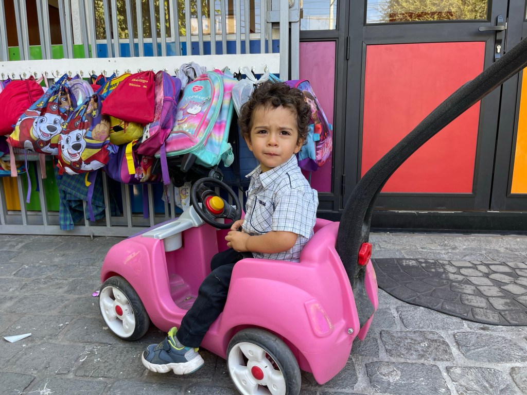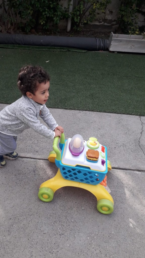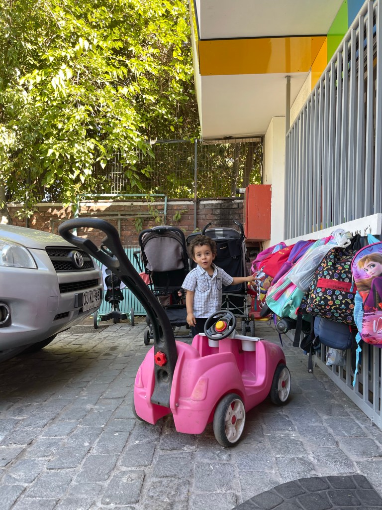 Día 1: no sabias a qué ibas, te encantó un auto rosado (de esos para llevar niños) así que te subiste, estuvimos un rato con la tía Marisol y ahí te dejé. Me contaron que me llamaste y lloraste a ratos. Te fui a buscar y me recibiste indiferente, querías salir a buscar el auto rosado y volver a subirte.
