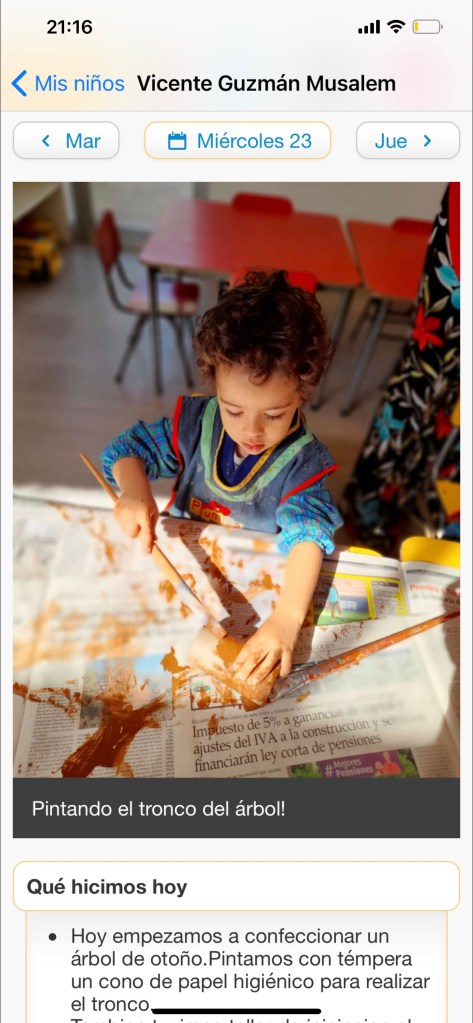 Y así fueron pasando los días y cada vez fue más fácil hijo, el jueves de la segunda semana, el 24 de marzo empezaste a irte en las mañanas con el Papá y la Estela, feliz, ya pudimos empezar a llegar al plan definitivo que era irte con ellos en las mañanas, llegar tipo 8 al jardín y después ir a buscarte yo a las 13:00 al ppio, será a las 14:00 desde abril, según nuestro plan.