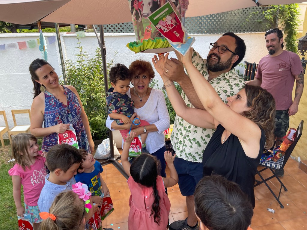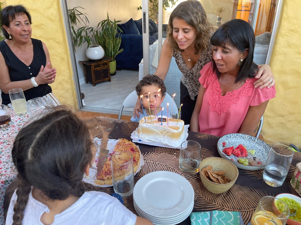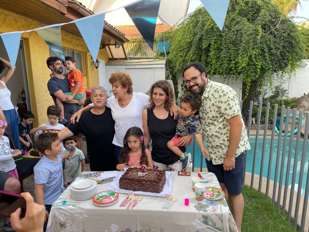 Estabas contento y curioso, comiendo las papitas fritas y los dulces que te gustan, te cantamos cumpleaños y volviste a apagar velas, lo pasamos súper bien. Hubo varios que se quisieron bañar en la piscina, tú no quisiste, últimamente no has andado con ganas de piscina.